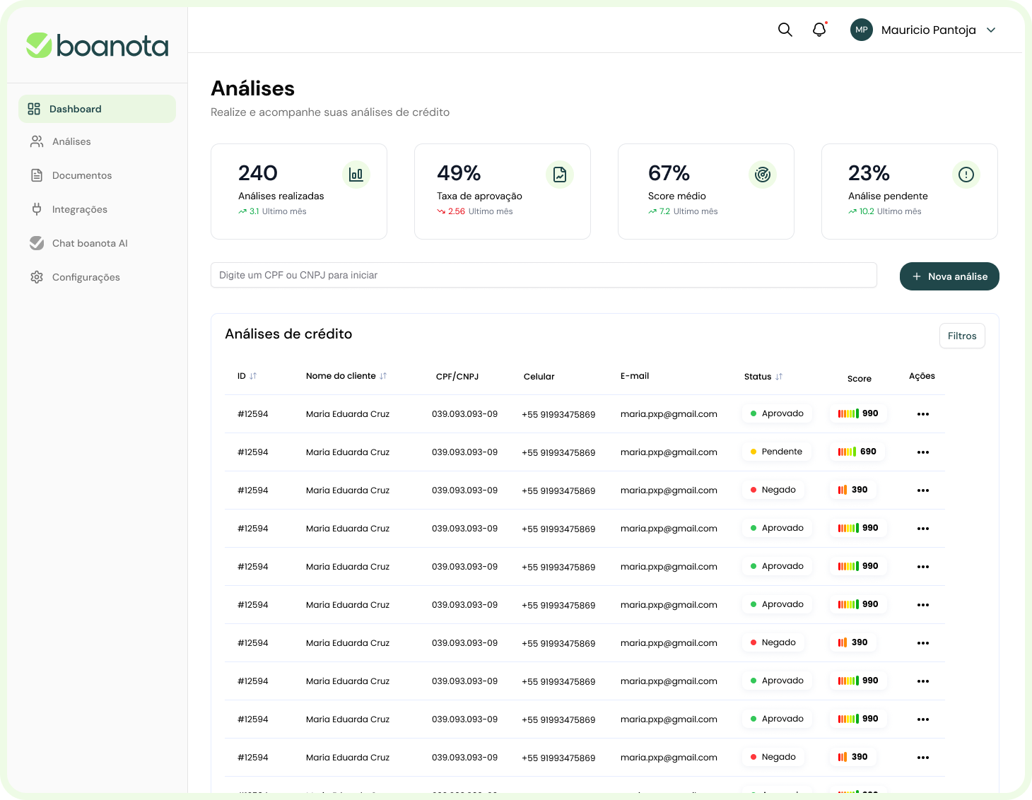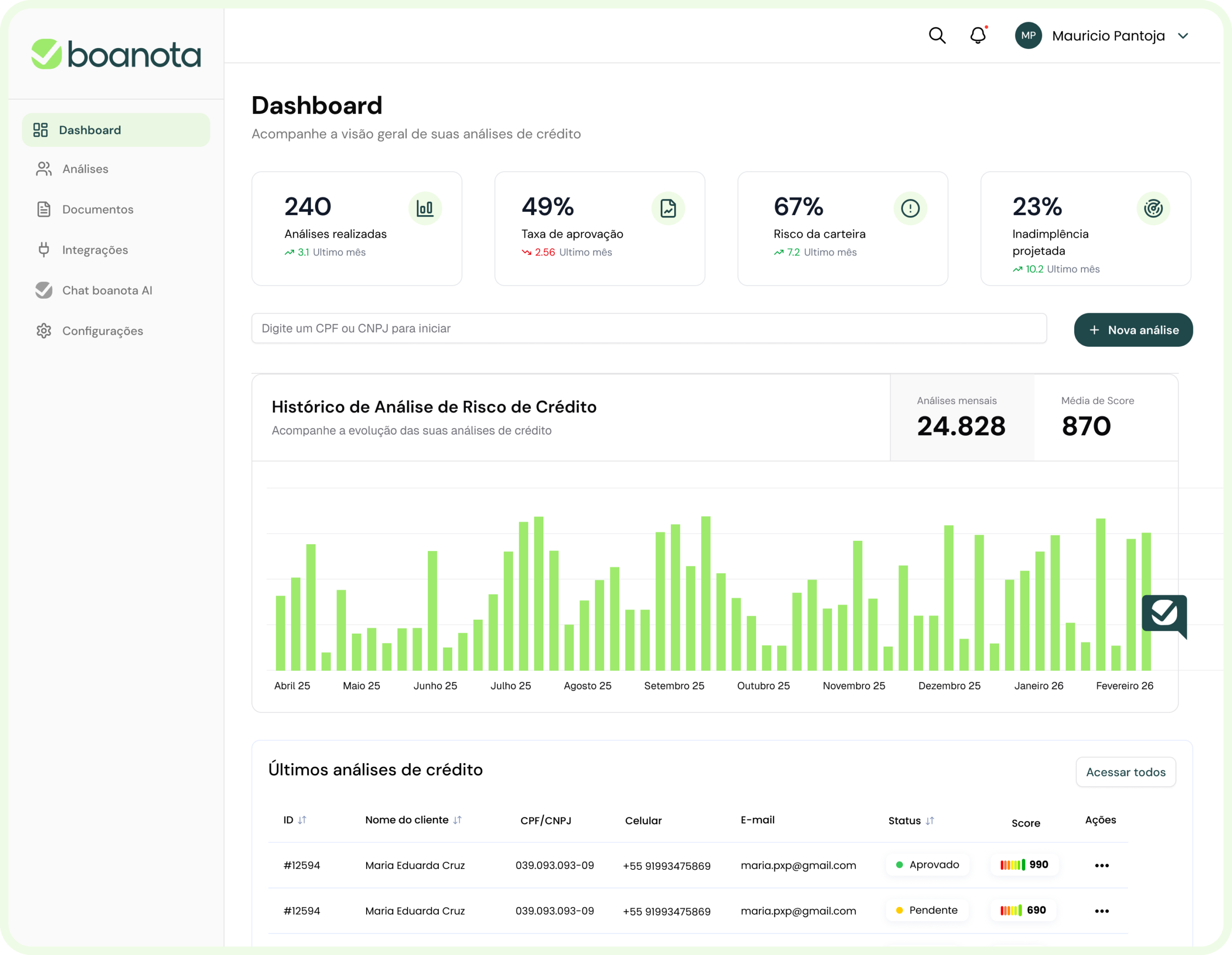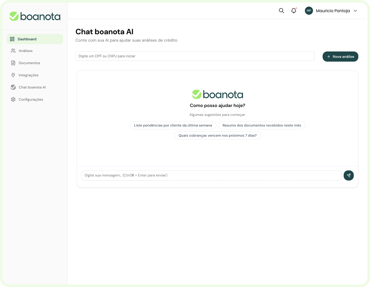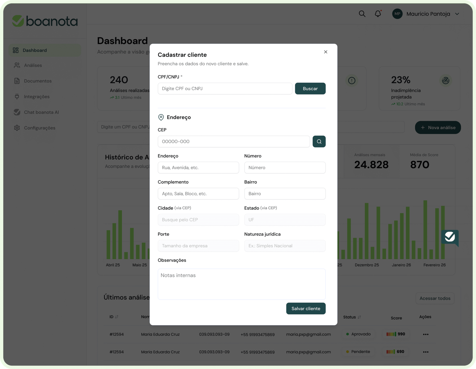 A Boanota ajuda empresas a avaliarem o risco de crédito com precisão, agilidade e conformidade — integrando KYC, análise documental e dados bancários em um só lugar.